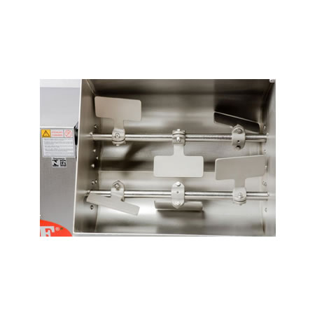A misturadeira de carne M-60 é um equipamento indicado para uso em pequenas e médias indústrias de embutidos. Estrutura construída em aço inox, caçamba, eixos, pás, tampa e protetores construídos em aço inox. Trabalha com dois eixos, conectados a seis pás, cujo movimento composto proporciona uma mesclagem perfeita. A Misturadeira de carne M-60 é dotada de sistema basculante que permite esvaziar a caçamba de forma simples e prática. Equipada com tampa protetora na caçamba.